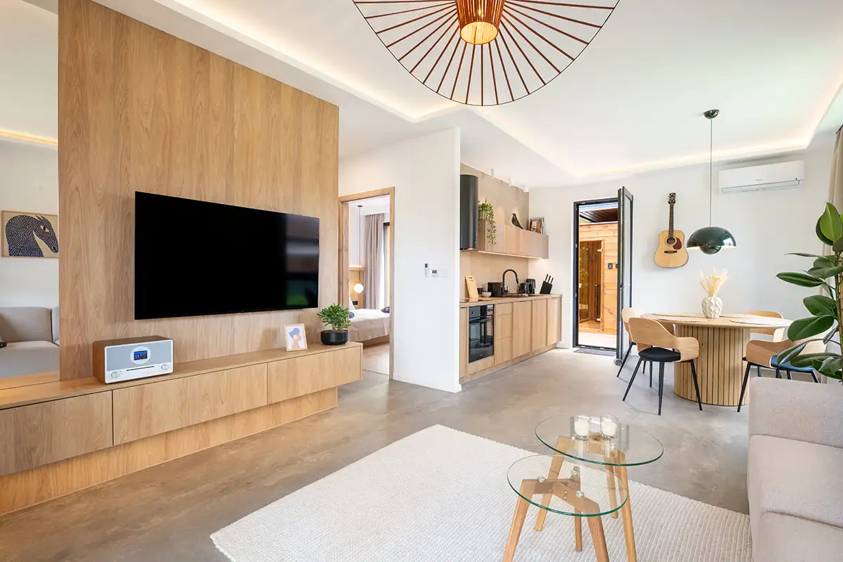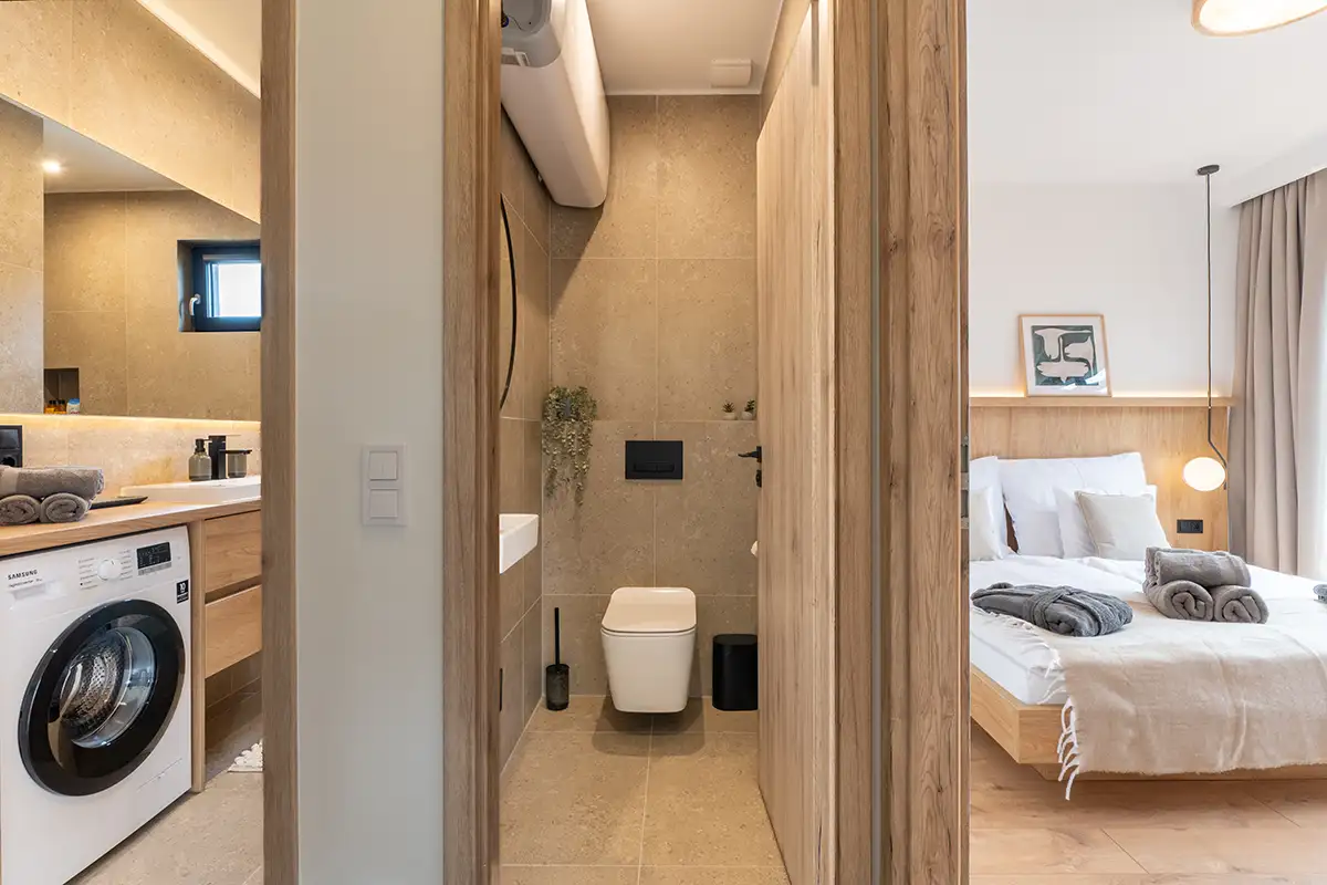 Négy fős önálló apartman, teljes értékű konyhával, mosogatógéppel, mosógéppel felszerelve, terasszal. A szálláshelyen elérhető szauna és jacuzzi. Kérés esetén gyerekágyat tudunk biztosítani.
